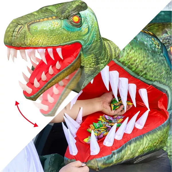 Great Functions. Equipped with built-in LED lights, this Halloween blow up dinosaur illuminates your Halloween display with a bright and captivating glow. What sets it apart is the automatic mouth opening and closing feature, adding an interactive touch to the decoration. Put some candies in the mouth and let kids have fun! Compatible with all car types.